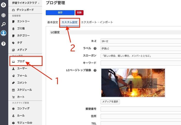その場合は「管理ページ」の左メニューにある「ブログ」>「カスタム設定」と進んで更新してください。