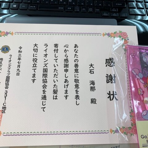 加藤 孝治ライオンの孫 大石 海那ちゃん7才 ヘアドネーションするため...