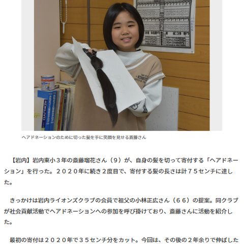 2月 22室蘭東ライオンズクラブ 2月 22室蘭東ライオンズクラブヘアードネーション 室蘭市内在住の坂本翠さんが「ヘアードネーション」にご協力、キャビネ...