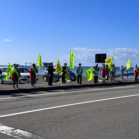 10月10日 交通安全人と旗の波運動として沿道に立ち、行きかう車に ...