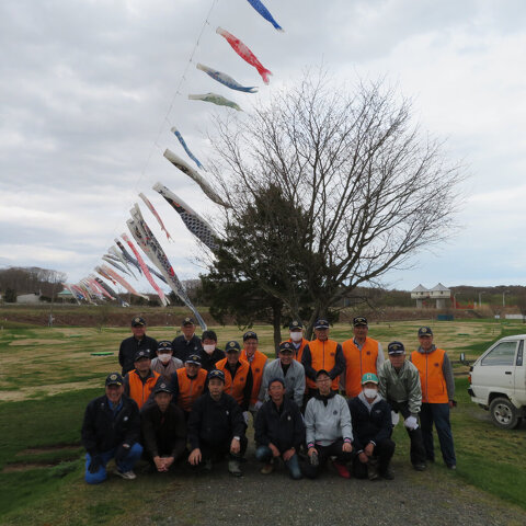 5月3日(土)、上厚真パークゴルフ場にて掲揚していた鯉のぼりの撤去作...