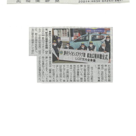 静内ライオンズクラブ結成60周年記念事業「献血広報車」寄贈にあたり...