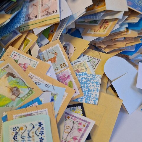 使用済み切手を収集し、盲老人ホーム聖明園へ送りました。 6,961枚。
