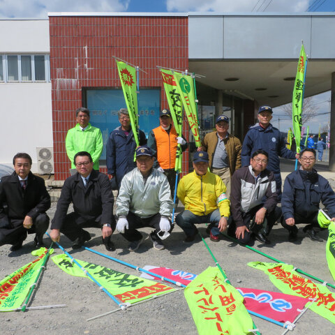 春の交通安全運動街頭啓発に参加協力。厚真市街地十字路交差点にて「安...