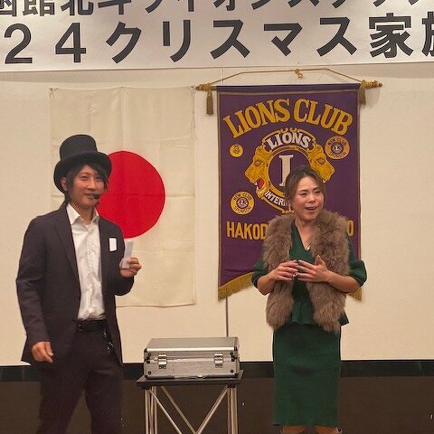 クリスマス家族会開催 ビンゴ・テーブル対抗ゲームを楽しみ、余興で手品...