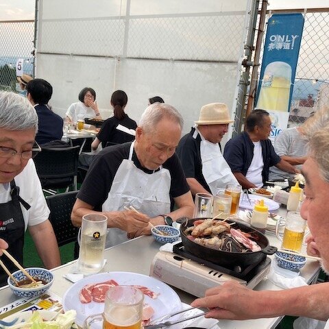 野外例会でホテルテトラにてジンギスカンパーティー開催。ビジターで松...