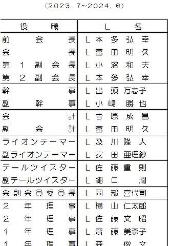 2023年-2024年苫小牧ハスカップライオンズクラブ 役員と委員会