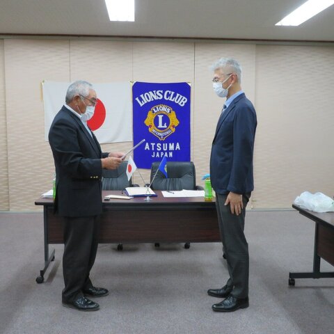 8月第1例会にて村上幸輝ライオンズにモナークシェブロン(50年)を授与...