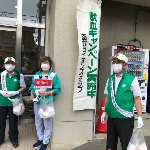 丸井今井函館店にて献血の呼びかけをおこなった。 200ml 4名 400...