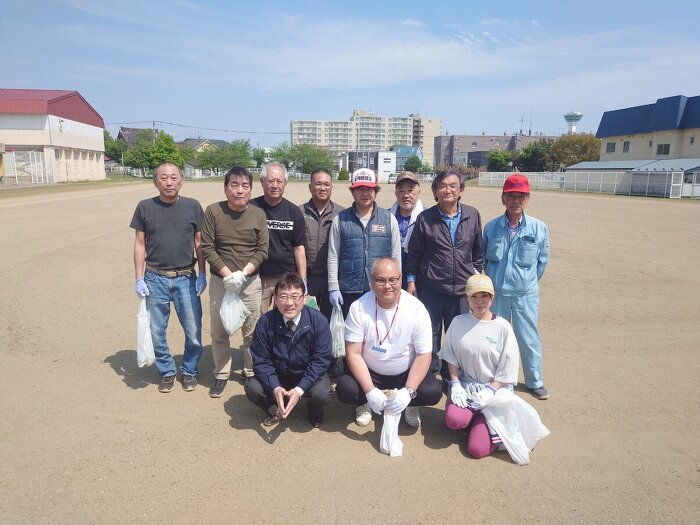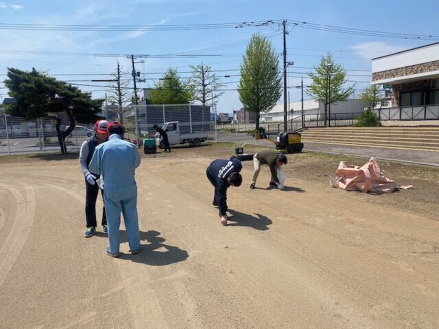 5月 19 函館盲学校グランド整備事業 2025年05月19日(月) アクティビティ 函館北斗ライオンズクラブ 函館盲学校のグランドを安全に利用してもらうため重機で整備したのち、メンバーにて細かい石など拾う作業をおこなった。