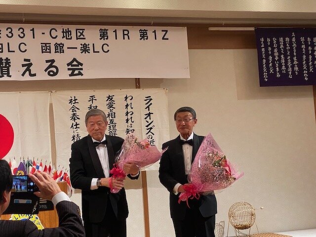 2月 19 3LC合同例会〔元ガバナーを讃える会〕 2025年02月20日(木) ミーティング 函館北斗ライオンズクラブ 函館北斗LC・木古内知内LC・函館一楽LC合同例会〔元ガバナーを讃える会〕開催 元ガバナー L北島孝雄 L松浦則雄 へ花束贈呈 キャビネット時の思い出話しをしてもらいました