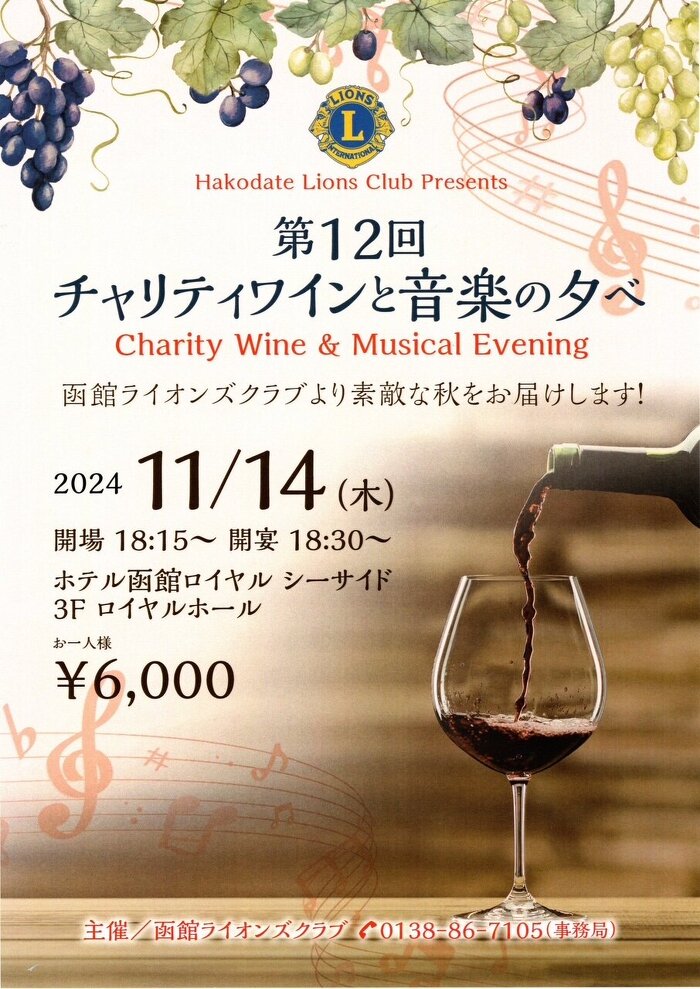 11月 14 函館ライオンズクラブ 第12回チャリティーワインと音楽の夕べ 2025年02月26日(水) ミーティング 函館一楽ライオンズクラブ 11月14日 函館ライオンズクラブ主催 チャリティーワインと音楽の夕べに 11名で参加いたしました。たくさん景品も当たり、大変盛り上がったすばらしいパーティーでした。 函館ライオンズクラブ L前川会長をはじめメンバーの皆様、ありがとうございました。