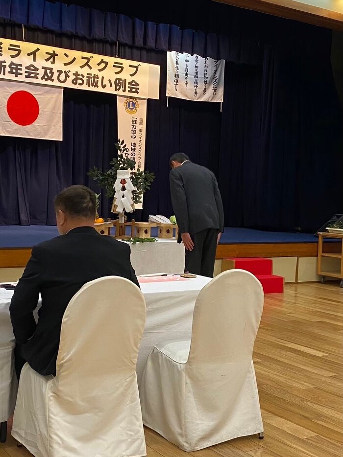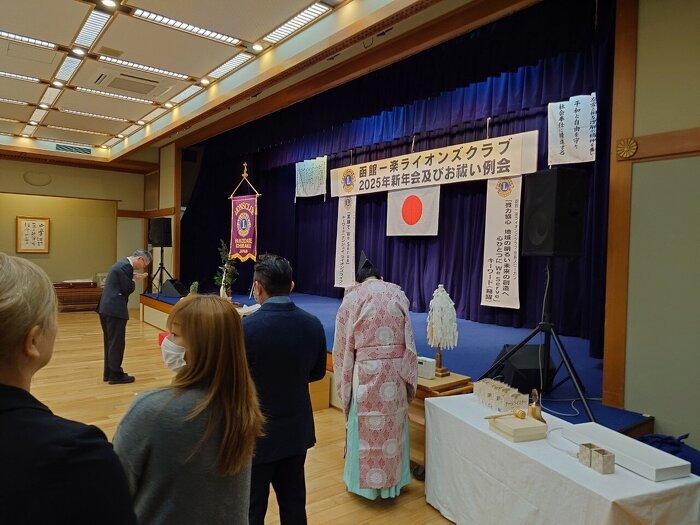 1月 14 第22回定例会 新年お祓い例会 2025年02月26日(水) ミーティング 函館一楽ライオンズクラブ 新年最初の例会はお祓い例会として開催いたしました。 当会メンバー伊部ライオンの湯倉神社様に起こしいただき、お祓いしていただきました。