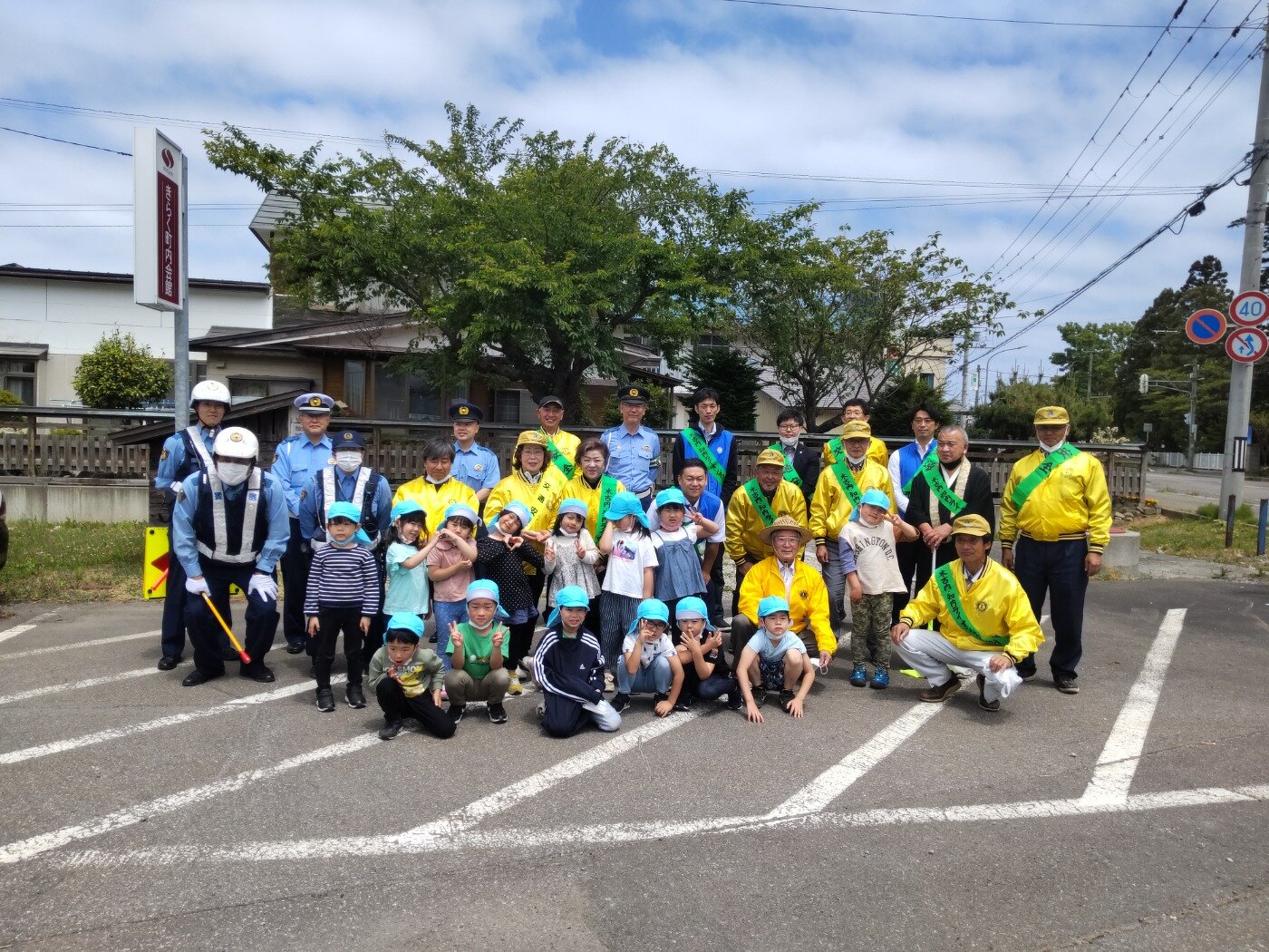 6月 14 交通安全街頭啓発ACT 2022年06月14日(火) アクティビティ 木古内・知内ライオンズクラブ 知内土地改良区駐車場にて、しりうち認定こども園児14名と交通安全を呼び掛けた(クラブ会員16名参加)