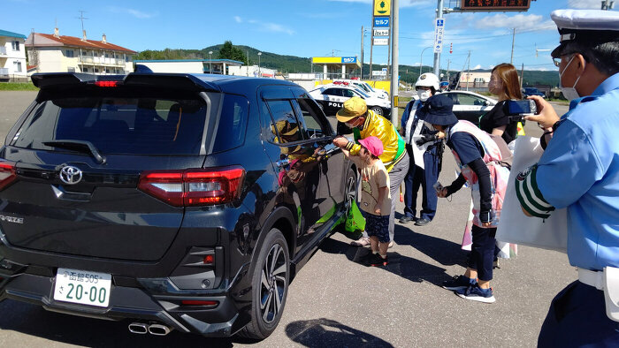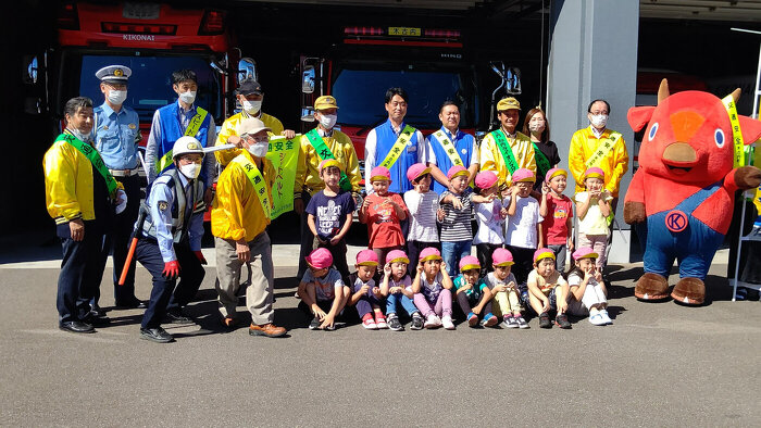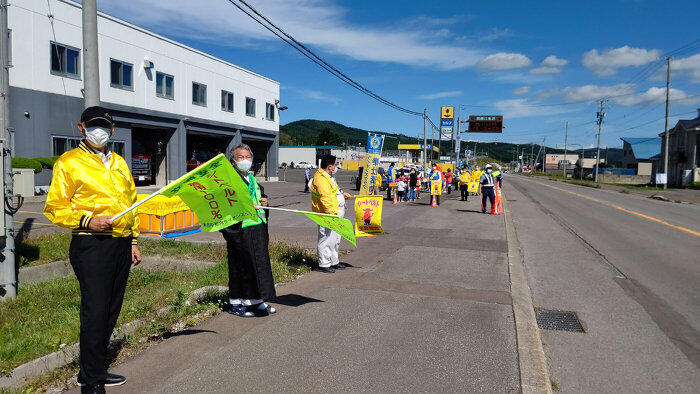 9月 26 交通安全街頭啓発ACT 2022年10月03日(月) アクティビティ 木古内・知内ライオンズクラブ 国道228号線沿いの木古内消防署駐車場にて「きこない認定こども園」の園児16名とクラブ会員13名が国道を通過するドライバーに交通安全を呼び掛けた