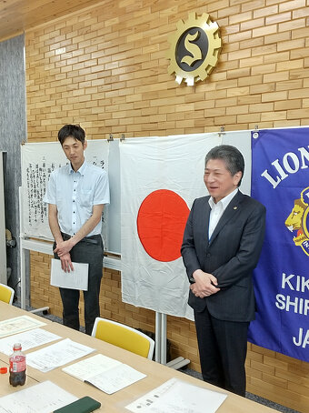7月 15 令和7年7月第1例会を開催しました。 2025年07月17日(木) ミーティング 木古内・知内ライオンズクラブ 令和7年7月第1例会を木古内商工会会議室にて開催した 例会では報告事項・協議事項に先立ち7月新規入会の3名の入会式を執り行いました。入会されたのは親会1名、若獅子会2名です。