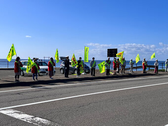 松前町道の駅付近の路上にて約100台のドライバーに安全運転の