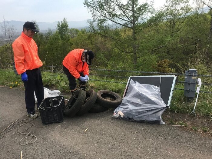 タイヤや、粗大ごみが多数あり、会員、力を合わせて回収致しました。