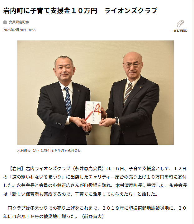 2023年02月28日(火) アクティビティ 岩内ライオンズクラブ