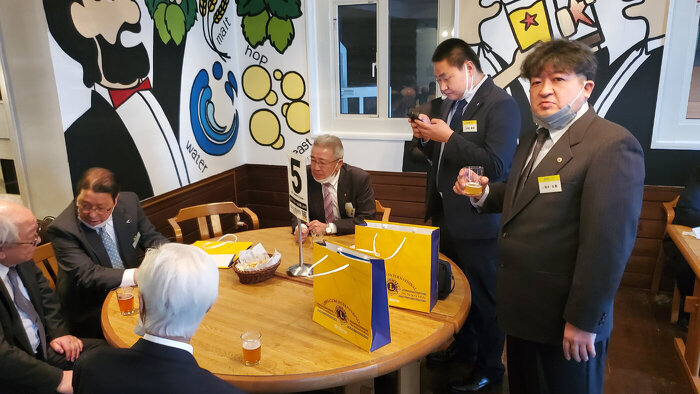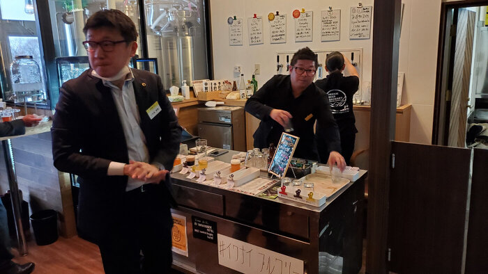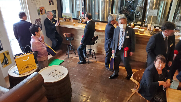 祝賀会まで30分ほどお時間があるので「イワナイブルワリー ビアバー」をご紹介、クラフトビール醸造施設を見ながら地ビールを飲んでいただきました。ノンアルコールのホップ飲料もございます。ビールが苦手な方にも楽しんでいただきました。
