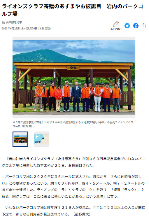 2023年06月30日(金) アクティビティ 岩内ライオンズクラブ