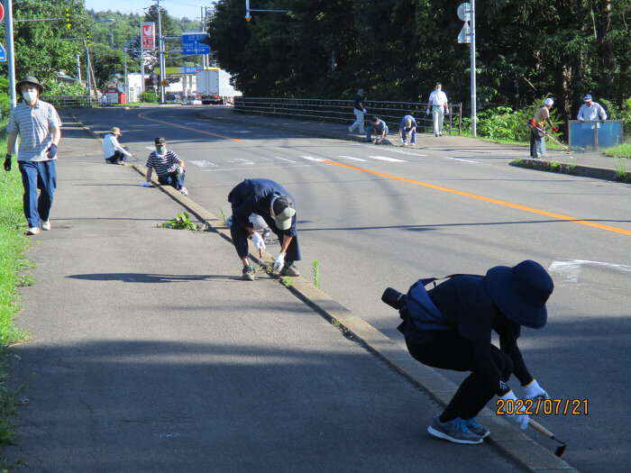 全町一斉除草作業 2022年07月21日(木) アクティビティ 黒松内ライオンズクラブ 7月21日㈭16:00~17:30 「日本で最も美しい村」連合に加盟している町の活動の一環として、全町一斉除草作業が行われました。 ライオンズクラブからは会員14名が参加し町の環境保全に努めました。 労力ACT 21h