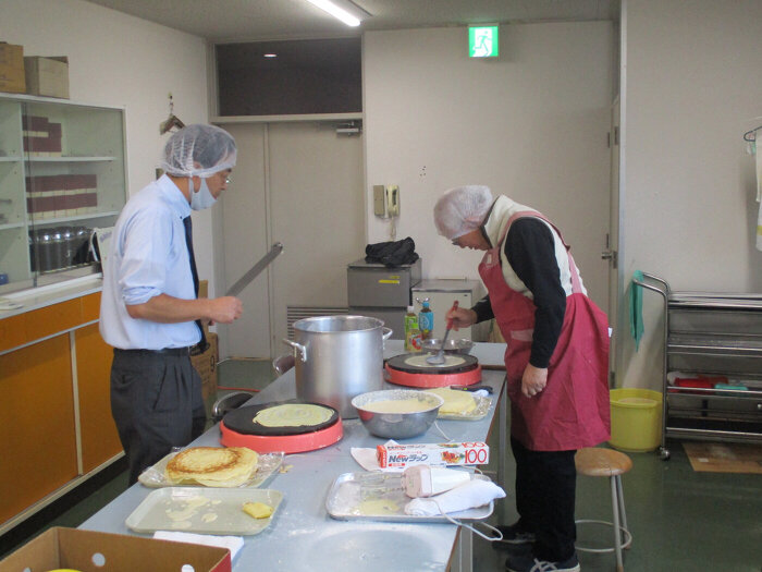 ライオンズクラブ会員数名で前日にクレープの皮を焼き、当日文化祭で販売しました。