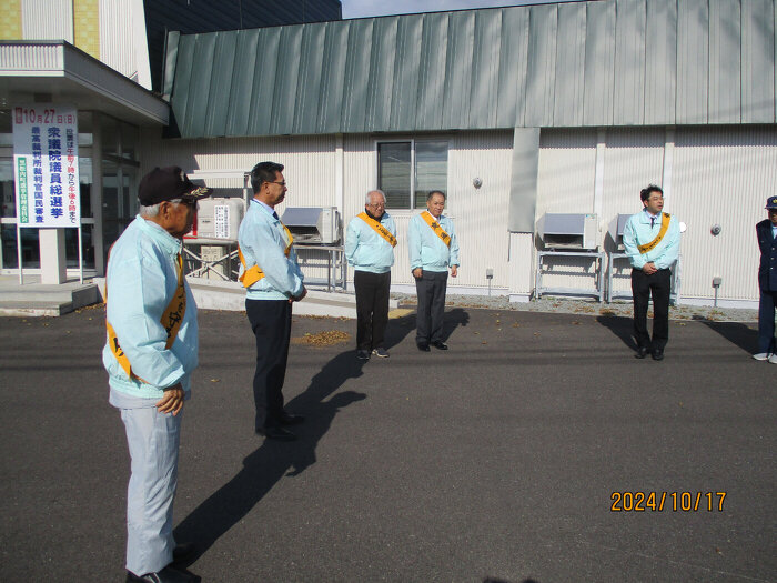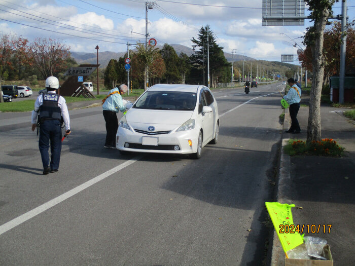 10月 17 秋の交通安全運動 2024年10月30日(水) アクティビティ 黒松内ライオンズクラブ 10月17日㈭13:30~14:30 町内の沿道で会員6名が秋の交通安全運動に参加しました。用意した黒松内のお菓子100セットを配布しながら運転手の方々に交通安全を呼びかけました。 労力ACT 6H
