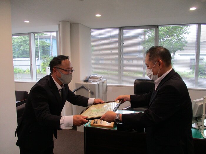 昨年より数回に渡り町内のクリーンボックスの塗装作業をしてきたことに対し、黒松内町長から感謝状を頂きました。