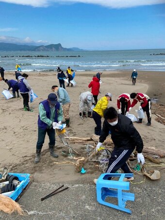 「地区内一斉清掃事業」蘭島海水浴場を清掃