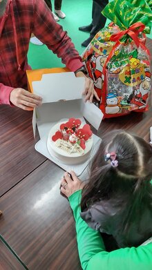 クリスマス家族会支援事業として昨年に引き続きさくら学園、相愛の里を会長ほか3名のライオンが訪問し、子供達へお菓子の詰め合わせやケーキ及び図書カードを贈りました。