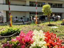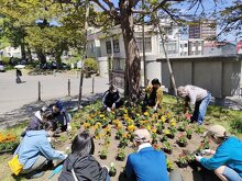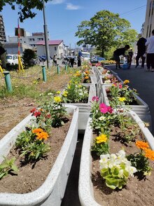 小樽市役所構内の花壇、プランターに植え込む草花苗寄贈(4LC合同ACT)