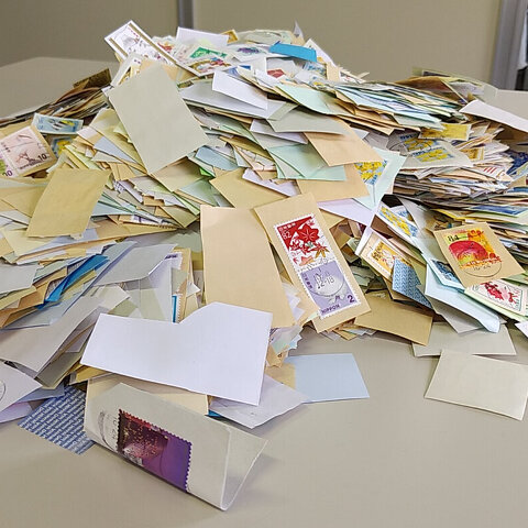 会員へ呼びかけ使用済み切手を収集し盲老人ホーム「聖明園」へ寄贈。8,4...