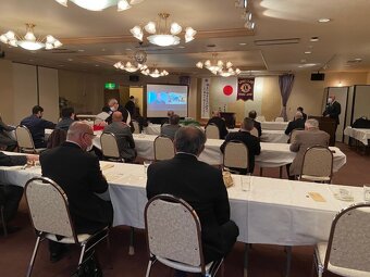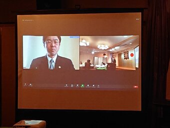 コロナ禍で例会訪問の日程調整が難しかった為、第1548回例会にて第2R第1ZゾーンチェアパソンL阪井大輔様よりZoomにてスピーチを頂きました。「ライオンズクラブの悩みは前向きな悩み」の演題にて約20分の有意義なお話に一同耳を傾けました。