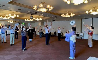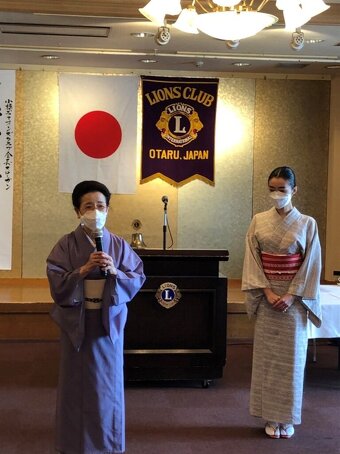 7月第2例会(第1555回例会)に、日本舞踊藤間流師範藤間扇玉先生をおむかえし、3年ぶりに参加する「潮まつりねりこみ」の練習会を行いました。
