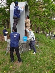 5月 17 円山公園献眼顕彰碑清掃アクティビティー 2022年05月18日(水) アクティビティ 余市ライオンズクラブ ECHO Vol.11 町内円山公園内に余市L.Cが平成6年に建立して以来、毎年行っている献眼顕彰碑清掃作業、コロナ感染拡大依頼2年ぶりに会員の手で磨き上げることができました。晴天の午後、爽やかな奉仕活動ができました。