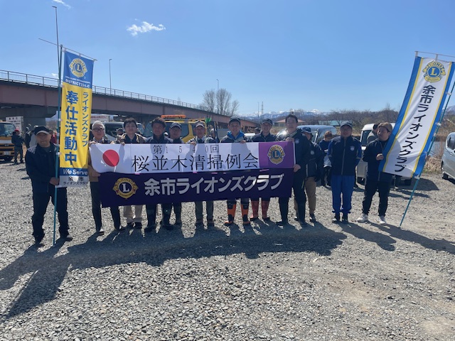 4月 14 地区内一斉清掃事業 2026年04月23日(木) アクティビティ 余市ライオンズクラブ NEW 4/14地区内一斉清掃事業として、余市観光協会主催余市川桜並木清掃事業に参加。町内事業所・団体から27団体160名が参加 しました。