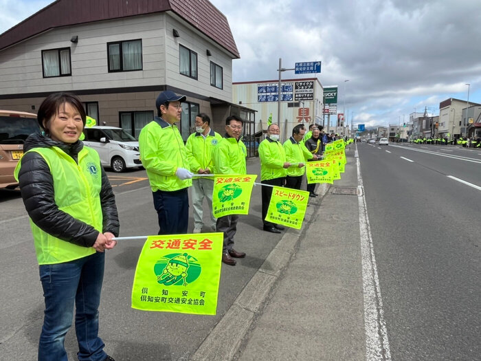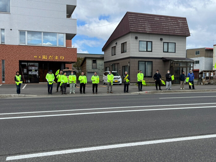 町内各団体とともに国道5号線両側にて旗波運動を行いました。