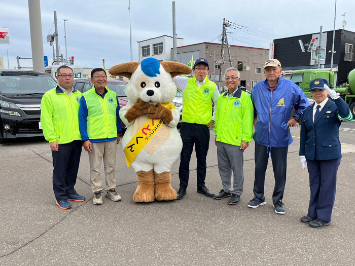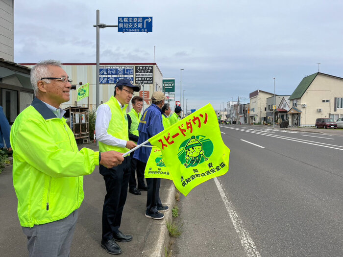 国道5号線両側にて交通安全運動を行いました。 労力ACT:6.5時間