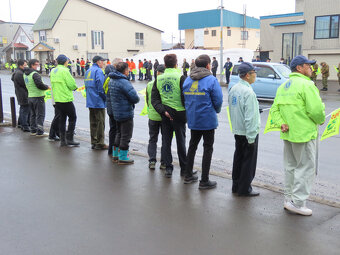 国道5号線両側にて通行ドライバーに交通安全を呼びかけました。