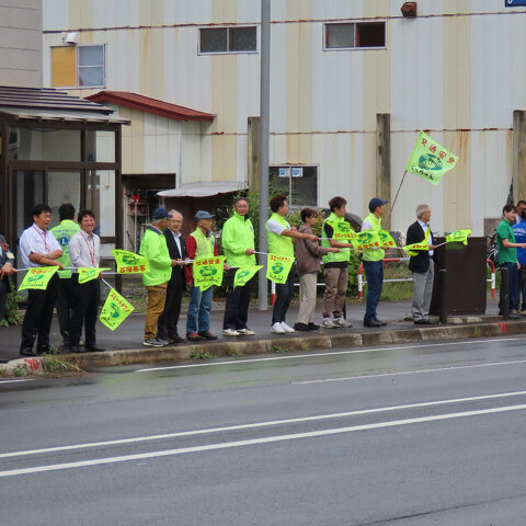 国道5号線両側にて旗波啓発活動を行いました。