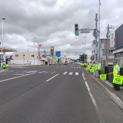 国道5号線両側にて交通安全運動を行いました。 労力ACT:6.5時間