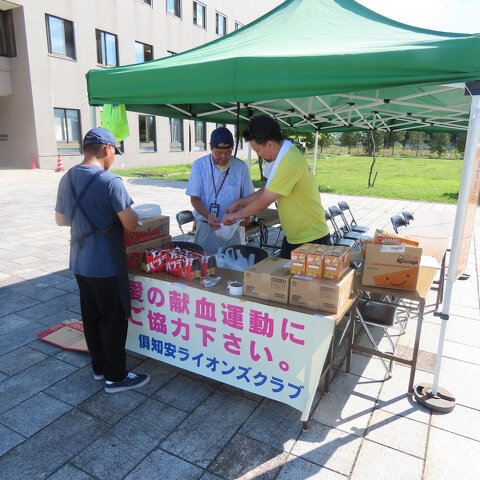 後志総合振興局前にて、献血にご協力いただいた方にドリンク・ゼリーを...