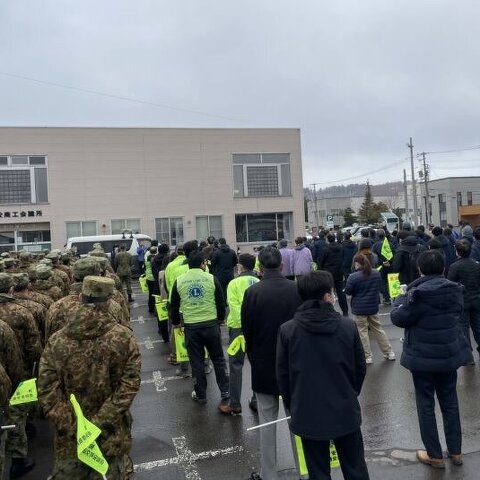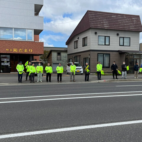 町内各団体とともに国道5号線両側にて旗波運動を行いました。