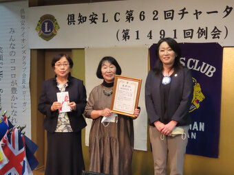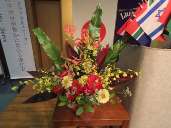 9月 15 9月第二例会(チャーターナイト記念会) 2022年09月26日(月) ミーティング 倶知安ライオンズクラブ ホテル第一会舘にて第62回チャーターナイト記念会を開催しました。 『隠れた奉仕者』として俱知安華道連盟の方をお招きし、表彰を行いました。 例会前にお花を活けていただきました。 「緑の大きな葉っぱは真ん中を羊蹄山、 左右はニセコ連峰をイメージ」とのことでした。 祝賀会ではラッキー抽選会を行い、大いに盛り上がりました!