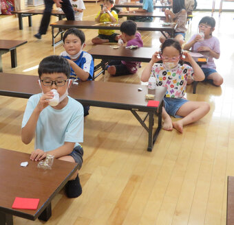 8月 17 ラジオ体操会最終日が豪雨で中止。でも頑張った子供たちにプレゼントを 2022年08月18日(木) アクティビティ ニセコライオンズクラブ 8/16(火)今年のラジオ体操最終日に頑張って参加した子供たちに高橋牧場飲むヨーグルトとお菓子をプレゼント予定していました。しかし!前夜からの豪雨に加え当日はさらに災害級の大雨が…ラジオ体操参加の子どもたちには日持ちのするお菓子のみ後日渡し、日持ちのしない飲むヨーグルトは学童保育所へ贈呈しました