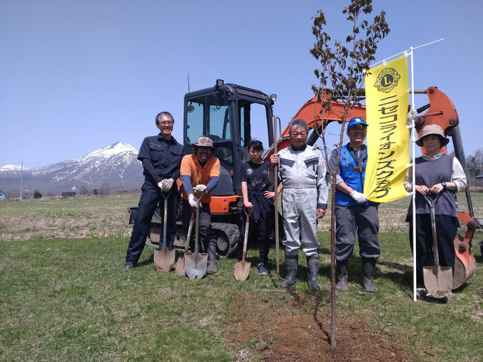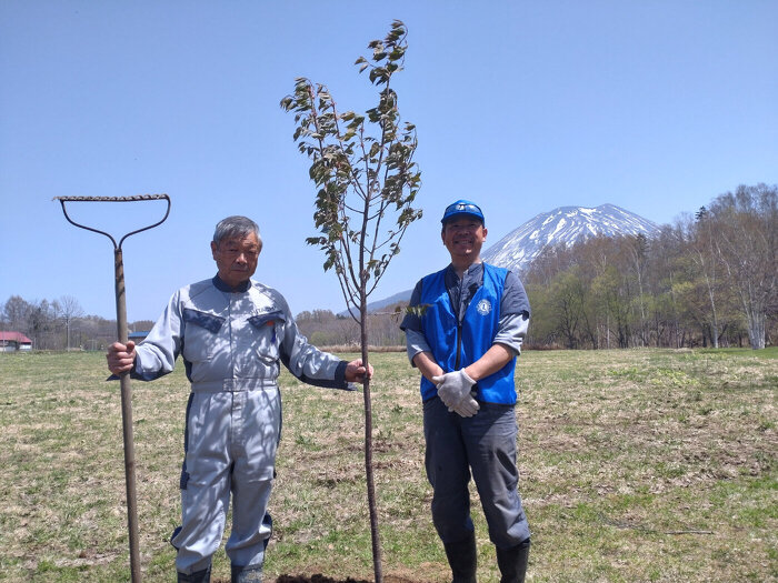 苫小牧年次大会を終えたその足でニセコ町有島記念館横に桜14本を植樹しました。