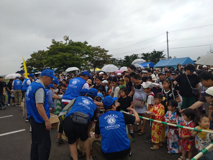 8月 03 8/3(土) 花火大会お菓子まきACT 2024年09月03日(火) アクティビティ ニセコライオンズクラブ 小雨の中でしたがお菓子まきを期待する子供たちが大勢詰めかけました 幼稚園迄の子供には手渡しし小学生以上は宙を舞うお菓子をゲットする人気のイベントです お菓子250個プレゼント 労力ACT 0.5H×14人=7H 金銭ACT 35,000円