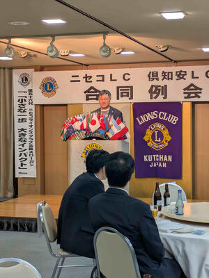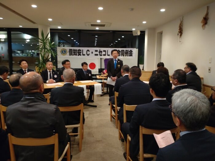 11月 08 倶知安LC・ニセコLC合同例会並びに中井ZCクラブ訪問 2024年11月15日(金) ミーティング ニセコライオンズクラブ 11/8(金)プラティーボにて総勢31名が集い合同例会を開催しました。翌日は岩内町でガバナー諮問会議があるにもかかわらずご多忙の中中井ZCと伊藤Z委員にご出席いただきクラブ訪問も実施されました。 懇親会では恒例の「競馬ゲーム」を行い見事「落馬」をニセコLCのL榊原幹事が引当て「落馬幹事」と命名!色々アクシデントがありましたが「ライオンズの誓い」も例会ではなく懇親会で行い…なごやかに終了しました。 最後には全員で記念撮影