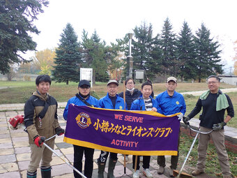 小樽グリーンライオンズクラブがこの公園内に献眼者の石碑を建立しており、ライオンズの森と看板もあることから、今回はⅬ田中会長が下見をして他のクラブに持ち掛け、広大な公園を2時間心地よい汗を流しながら作業をしました